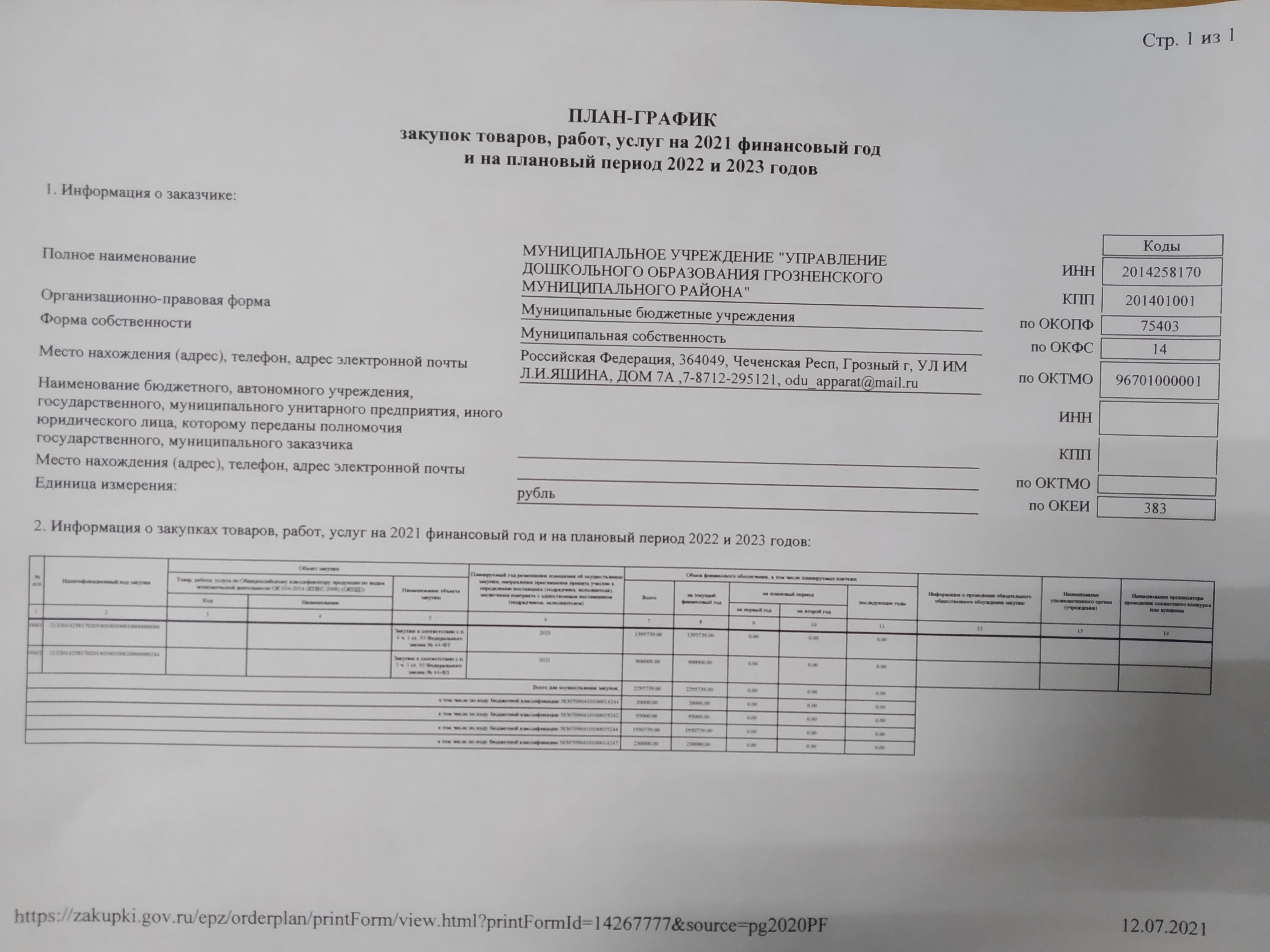 Приказ о закреплении территорий Грозненского муниципального района Чеченской Республики за муниципальными бюджетными дошкольными образовательными учреждениями Грозненского муниципального района Чеченской Республики (2022 г.)