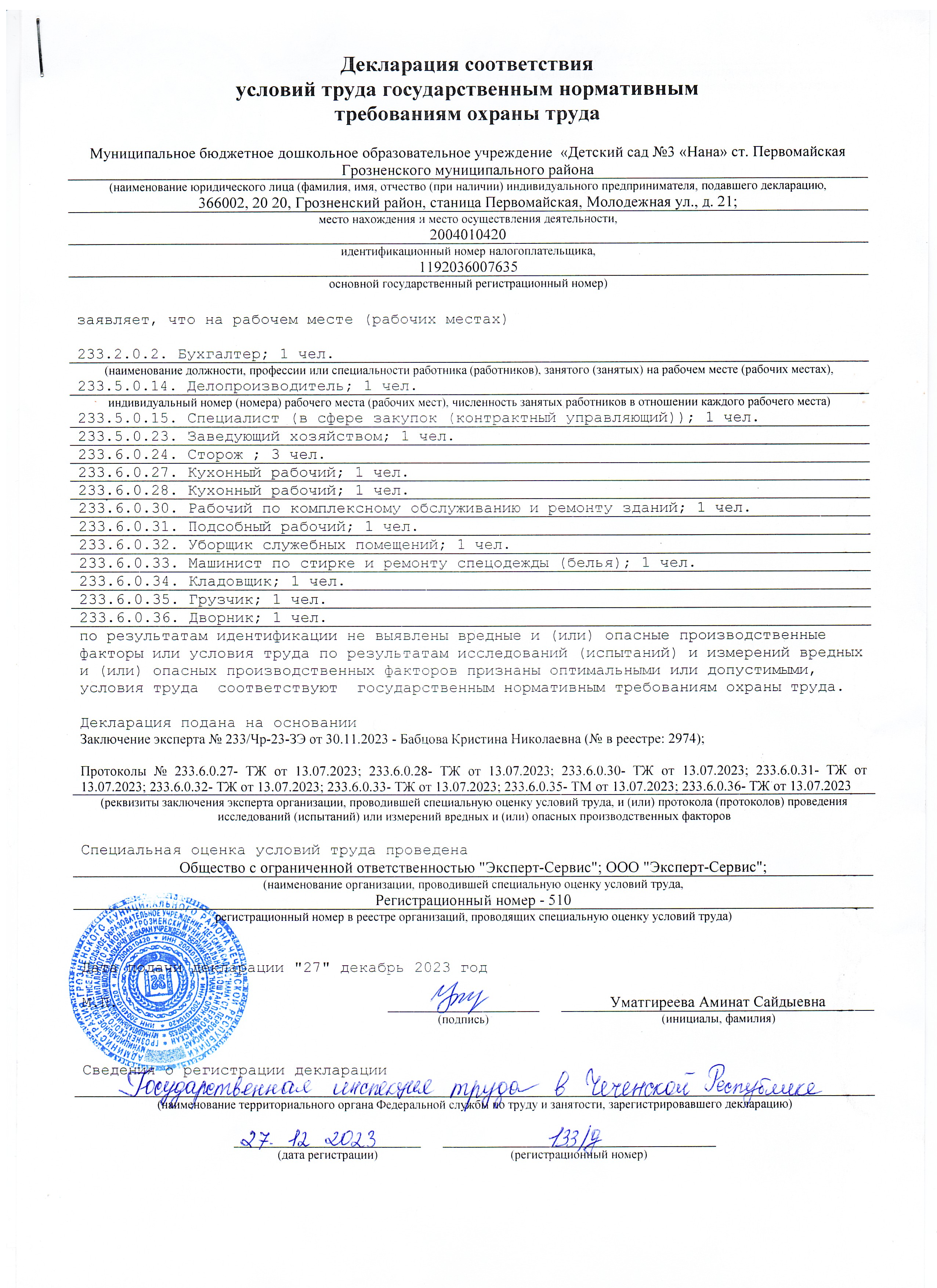 «Детский сад № 3 «Нана» ст. Первомайская Грозненского муниципального района»