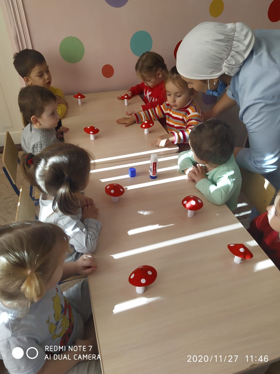 В октябрьском номере есть статья «Мухоморы из бумаги», которую мы использовали при работе с детьми младшей группы «Малыши», с целью: