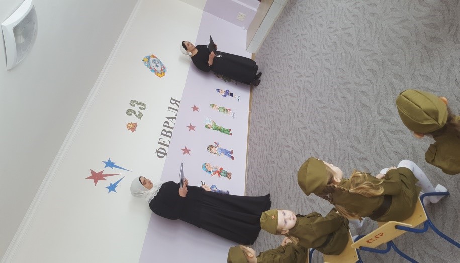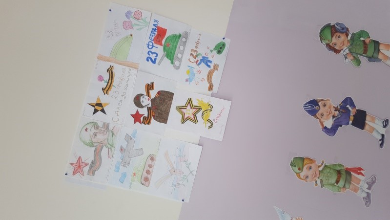 Организована выставка рисунков «Защитники отечества». В средней группе прошел утренник (присутствовало 16 детей воспитателя).