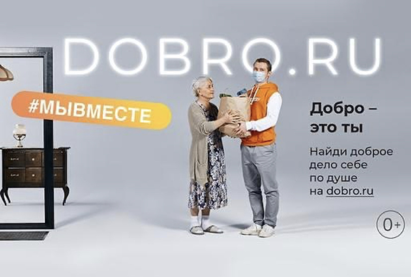 Основной слоган – «Добро – это ты». Главный ресурс в мире помощи – это сам человек, со своими интересами, предпочтениями, знаниями, умениями и навыками. У добра нет пола, возраста, цвета и границ. Добровольчество доступно для каждого, и любой вклад важен. В основе рекламных концептов – объединение различных видов волонтерской деятельности, от помощи пожилым, в частности помощь в доставке продуктов, до помощи животным и эковолонтерства, где участники объединяются, чтобы сделать мир вокруг себя лучше и добрее.