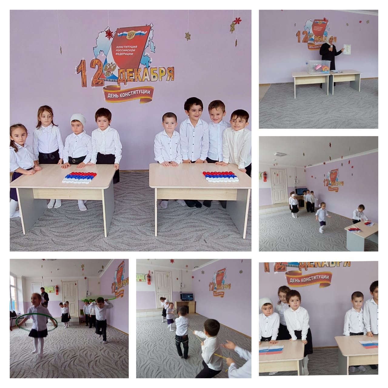 В средней группе «Малыши» (присутствовало 13 детей и 1 воспитатель) прошло спортивное развлечение ко Дню Конституции РФ.