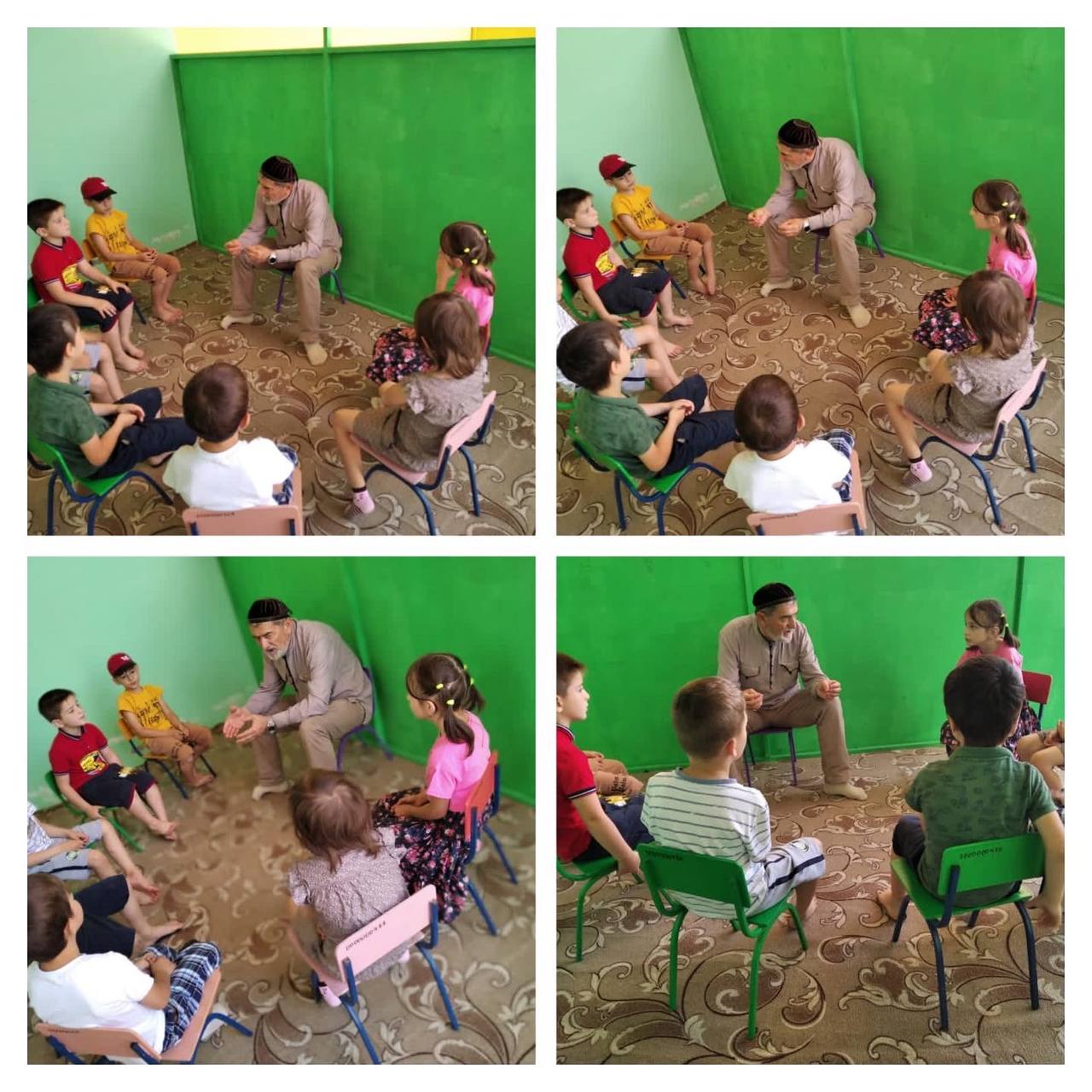 В старшей группе "Ромашки" богослов Ильясов Имран провел занятие по теме:"Правильное чтение суры Фатихьа"